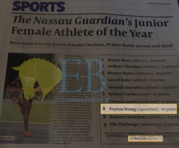CONGRATULATIONS!!!! to Peyton Wong, voted one of The Nassau Guardian’s Top 10 Junior Female Athletes of the Year.