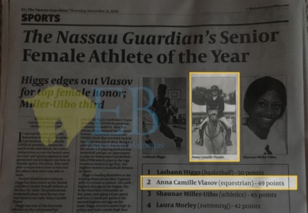 And finally, CONGRATULATIONS!!!! to Millie Vlasov, The Nassau Guardian’s 2nd-ranked Senior Female Athlete of the Year. Millie was edged out of the top spot by only 1 vote!